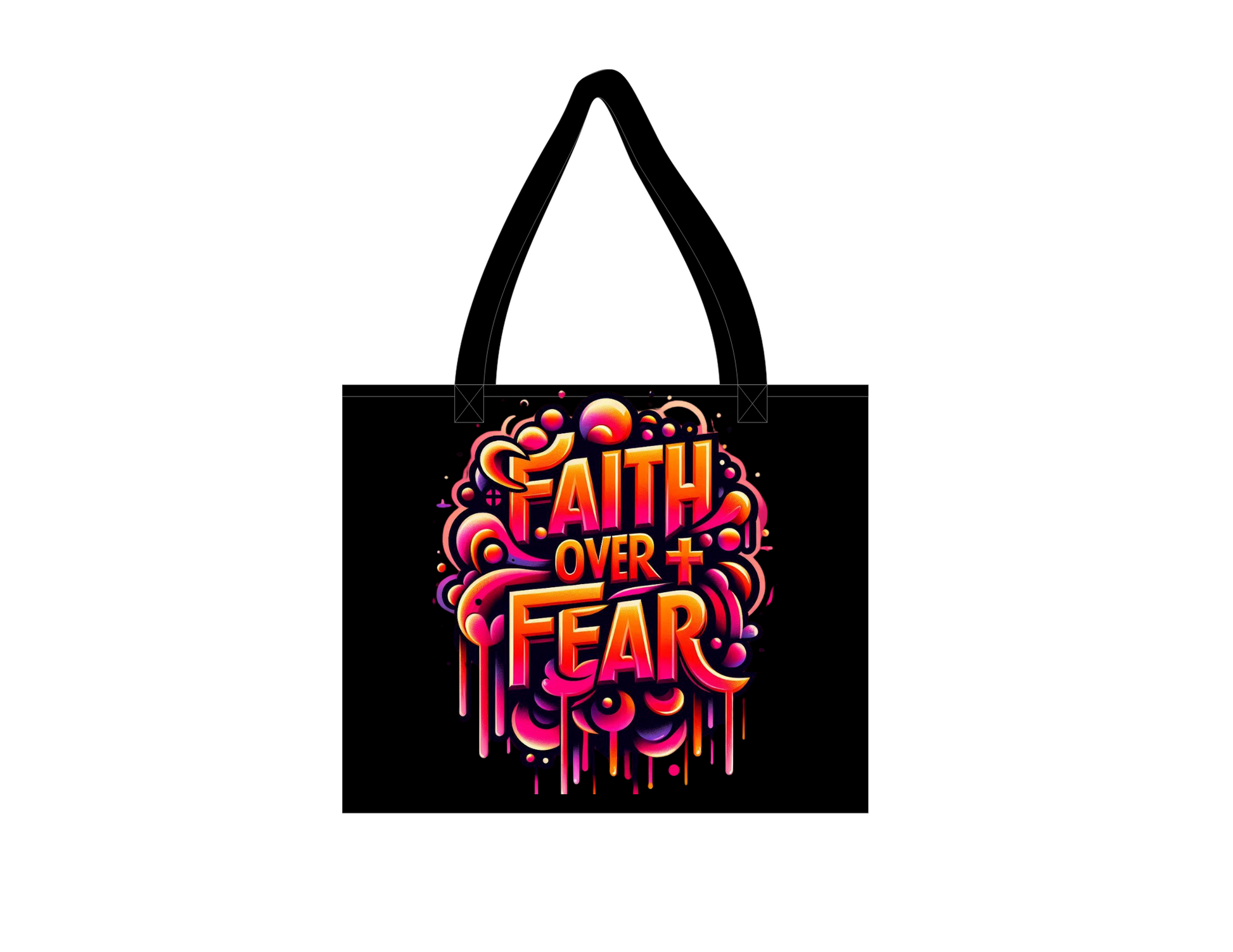 FAITH OVER FEAR CROSS CENTERED TOTE BAG