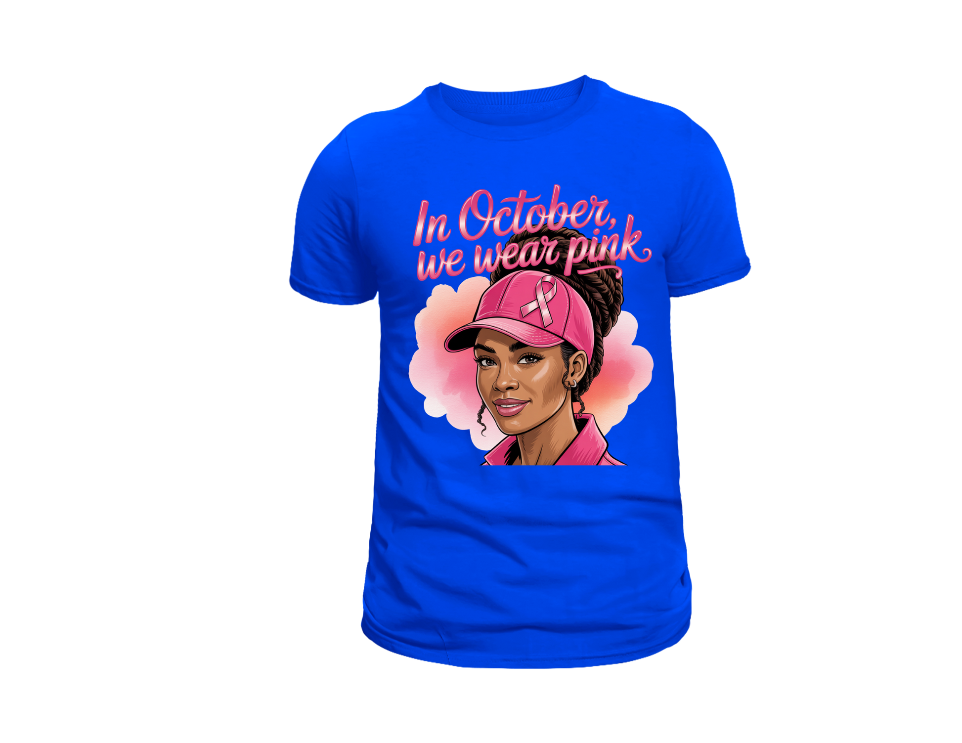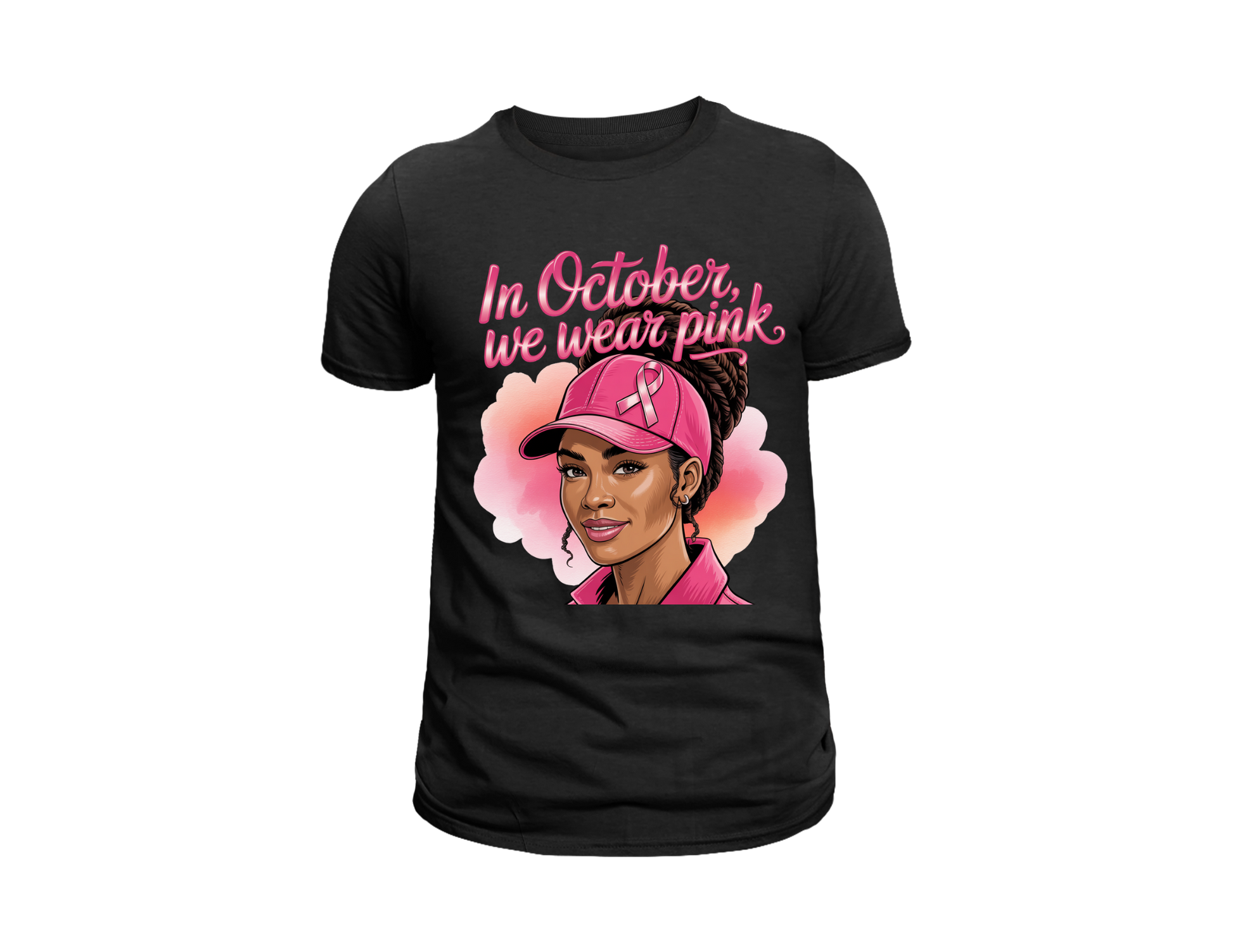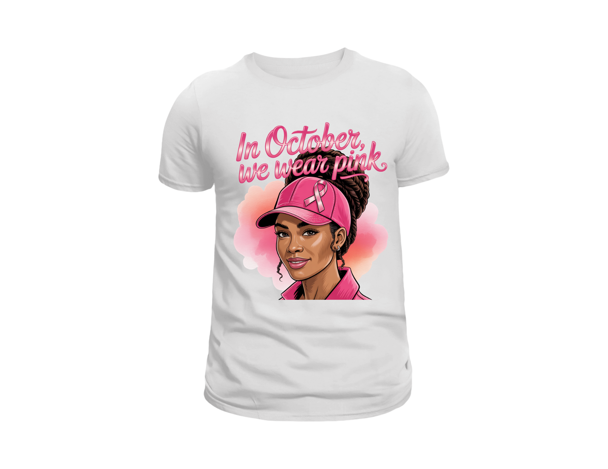 Support breast cancer awareness with the "In October We Wear Pink" T-shirt. Designed for comfort and style, this shirt proudly shows your commitment to raising awareness during Breast Cancer Awareness Month. Made from soft fabric, it’s ideal for everyday wear while spreading an important message. Perfect for those who want to combine fashion with advocacy.